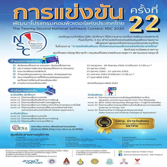 ประกาศผลผู้ผ่านรับทุนรอบแรก (ข้อเสนอโครงการ) NSC 2020 ภาคตะวันออกเฉียงเหนือ จำนวนโครงการที่สมัคร 270 โครงการ ผ่านรับทุนรอบแรก 127 โครงการ โดยหนึ่งในนั้นมีกลุ่มของหลักสูตรวิศวกรรมคอมพิวเตอร์ คือ กลุ่ม ระบบควบคุมการเข้าถึงภายในที่พักอาศัยโดยใช้คิวอาร์โค้ด ประกอบด้วย 1) นายวิทวัฒน์ แก้วสีไว 2) นางสาวสุชาดา พรมลีย์ 3) นายอนุวัฒน์ วิลามาตย์ เป็นนักศึกษาวิศวกรรมคอมพิวเตอร์ และมี ผู้ช่วยศาสตราจารย์ ดร.ภาคย์ สธนเสาวภาคย์ เป็นอาจารย์ที่ปรึกษาหลัก ในการแข่งขันรอบที่ 2 กลุ่มที่เข้ารอบจะต้องส่งผลงานและนำเสนอผลงานที่มหาวิทยาลัยขอนแก่น ในวันที่ 31 ม.ค. 2563 เพื่อลุ้นเข้ารอบต่อไป